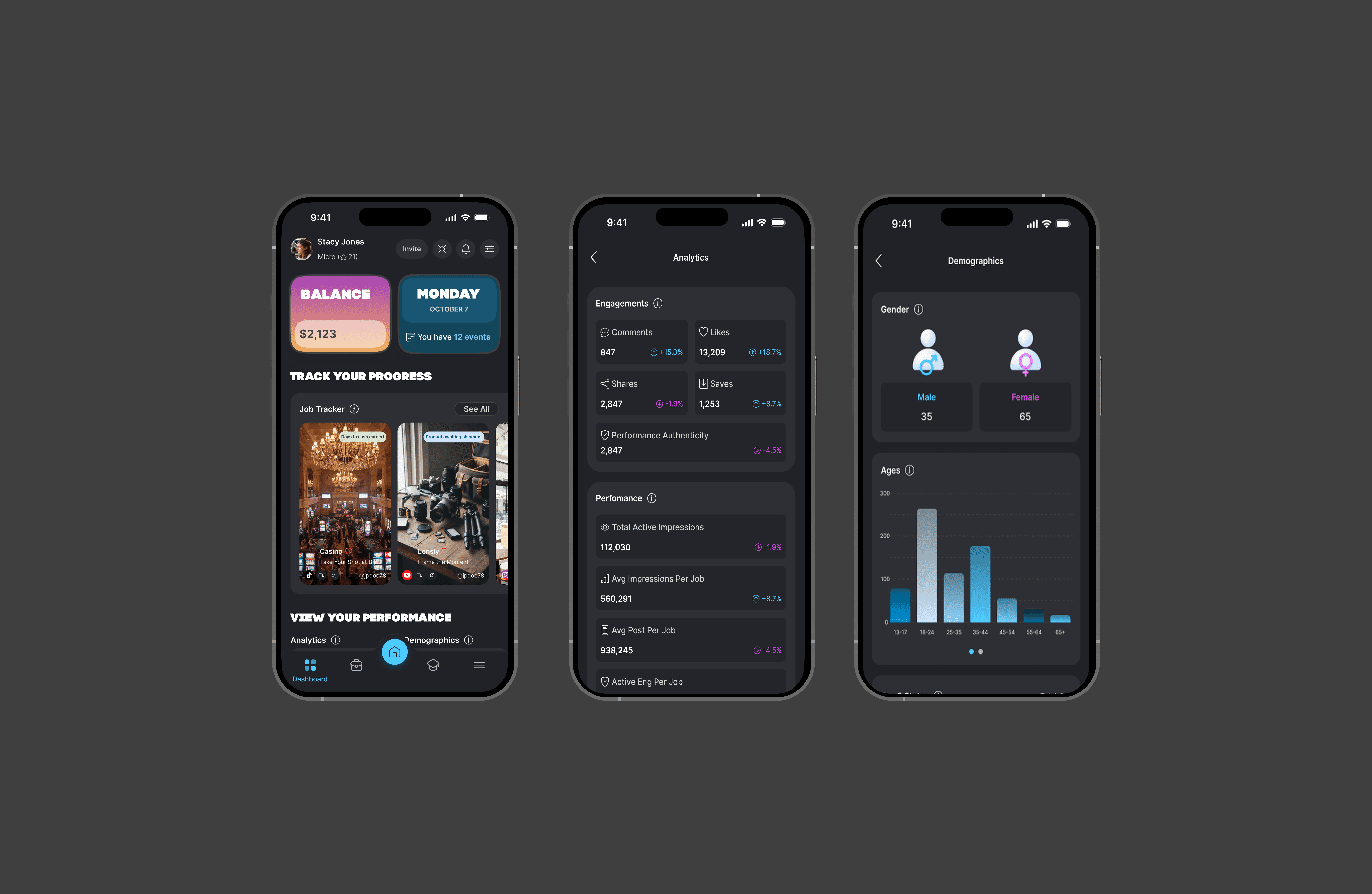 The app needed to support 3 distinct user types (brands, creators and recruiters) with different goals and workflows.